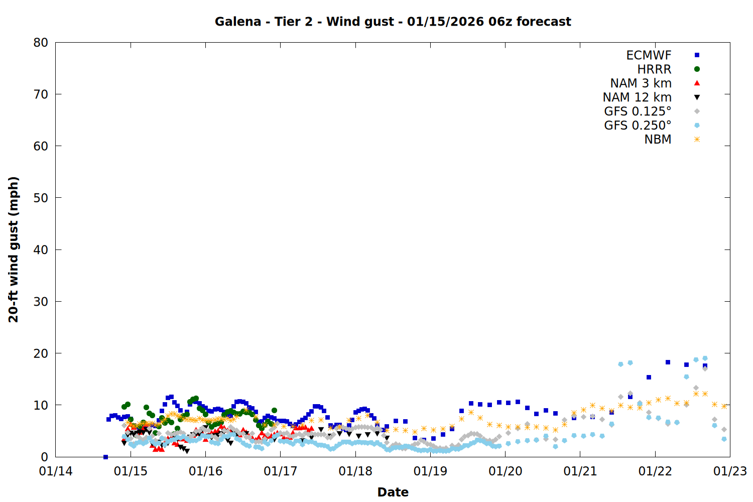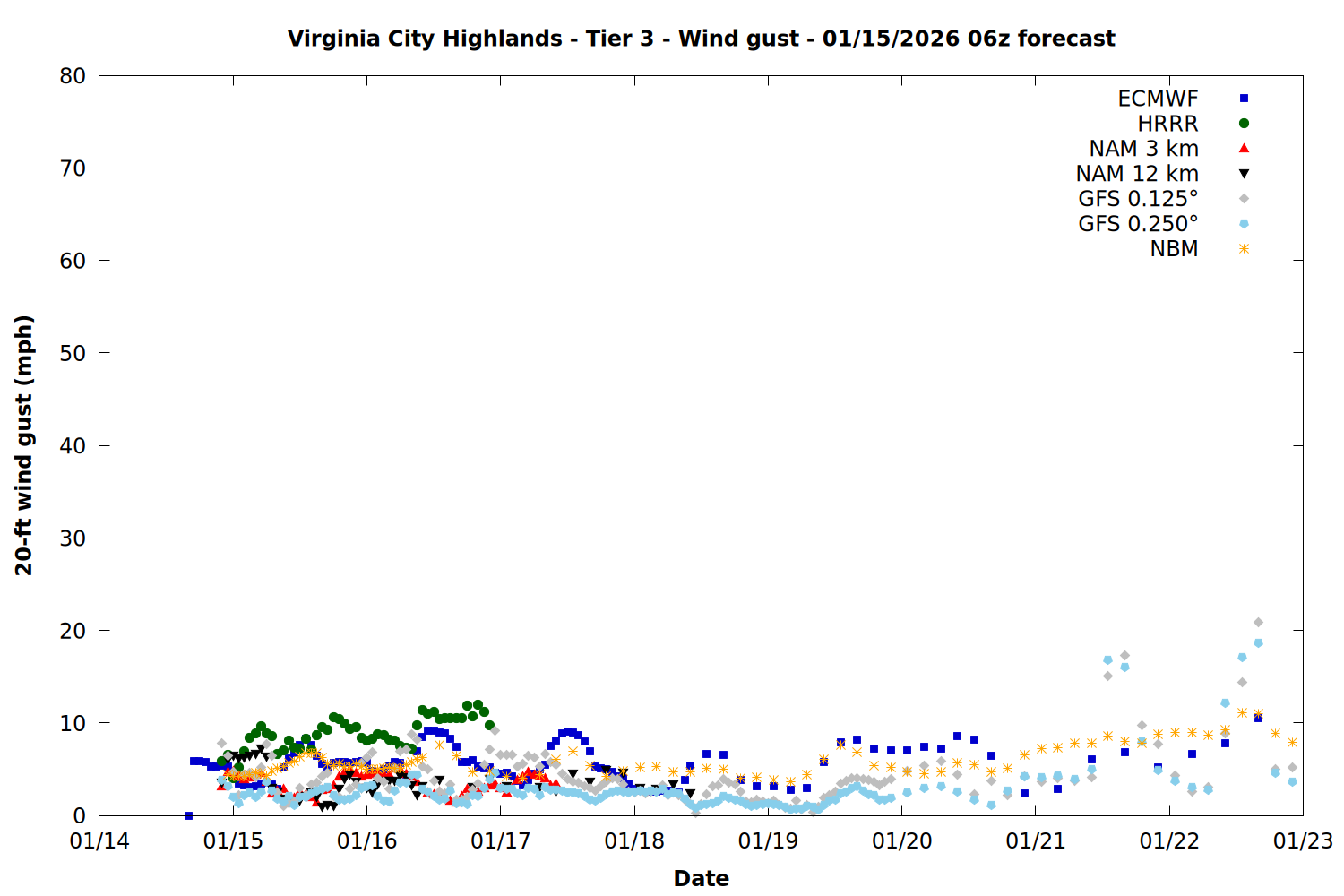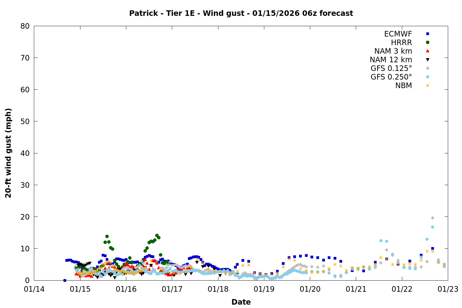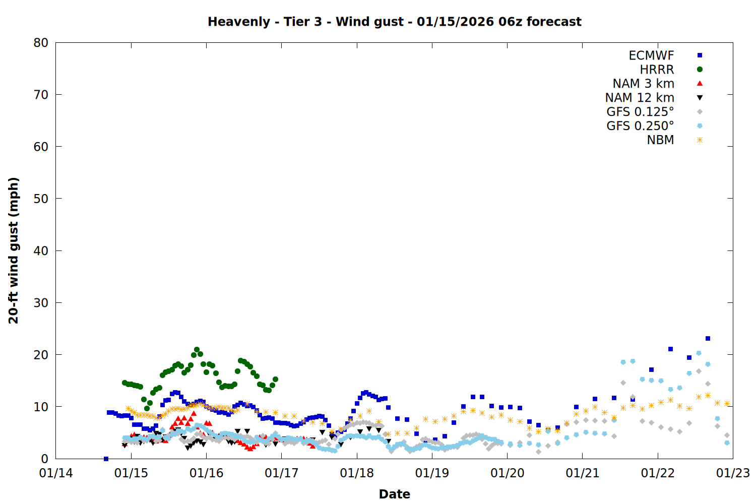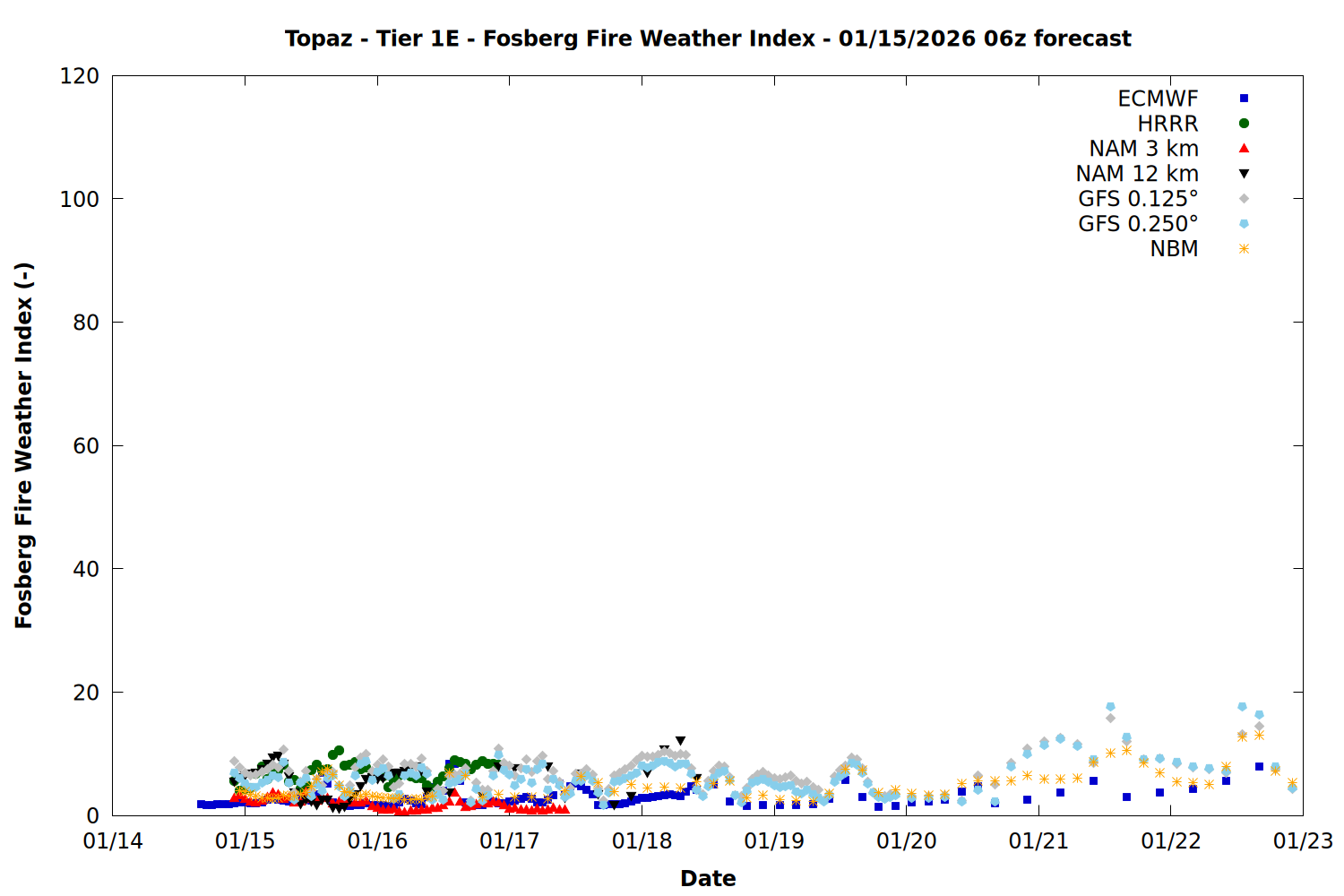 | Zone | Jan 15 | Jan 16 | Jan 17 | Jan 18 | Jan 19 | Jan 20 | Jan 21 |