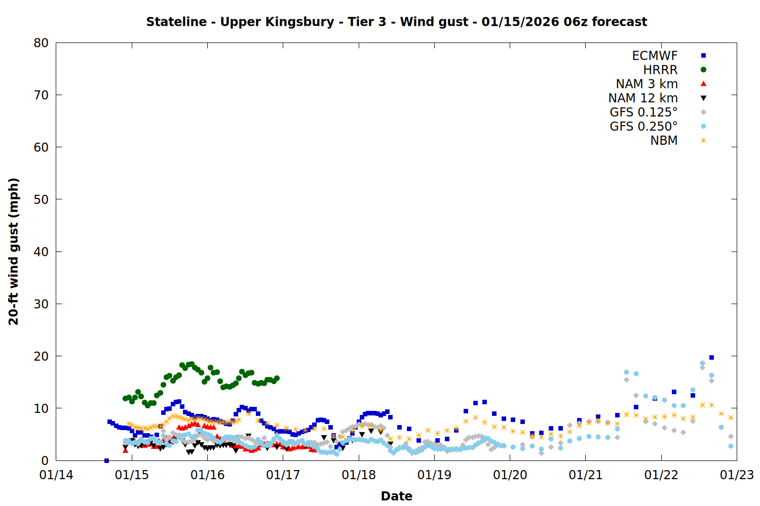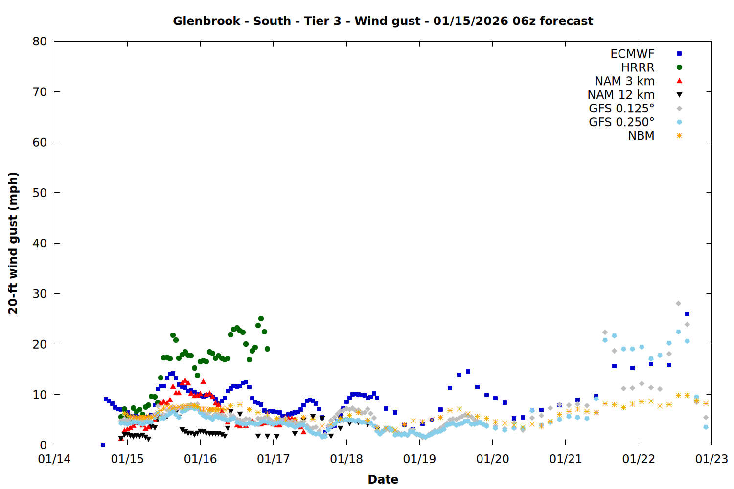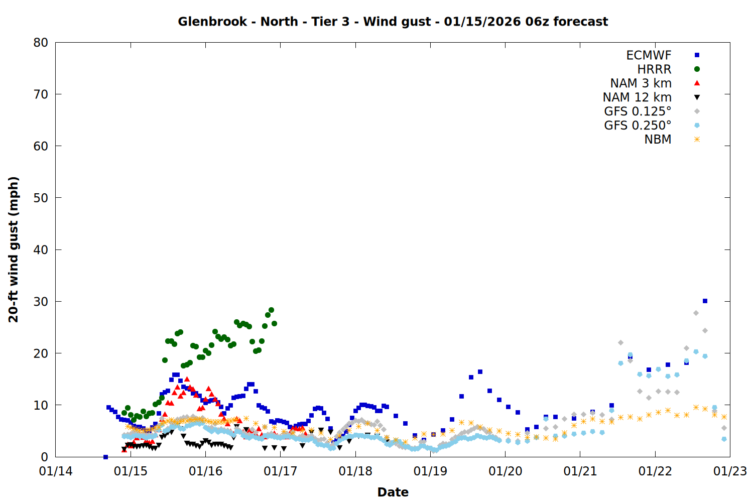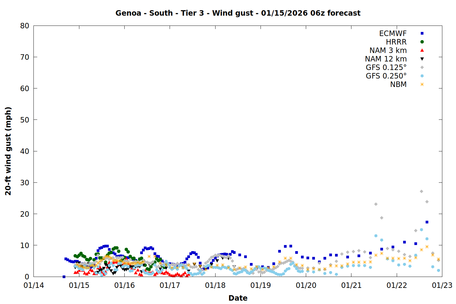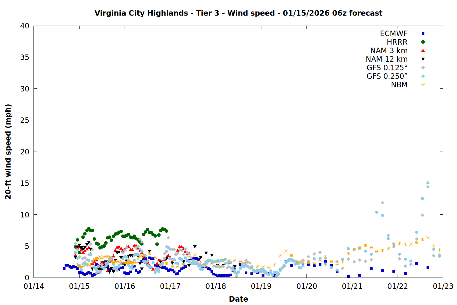 | Zone | Jan 15 | Jan 16 | Jan 17 | Jan 18 | Jan 19 | Jan 20 | Jan 21 |