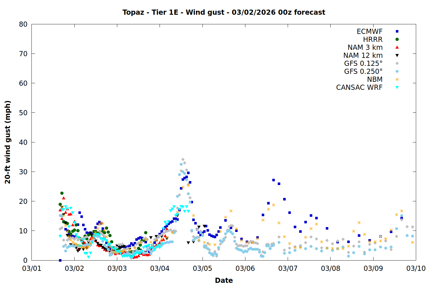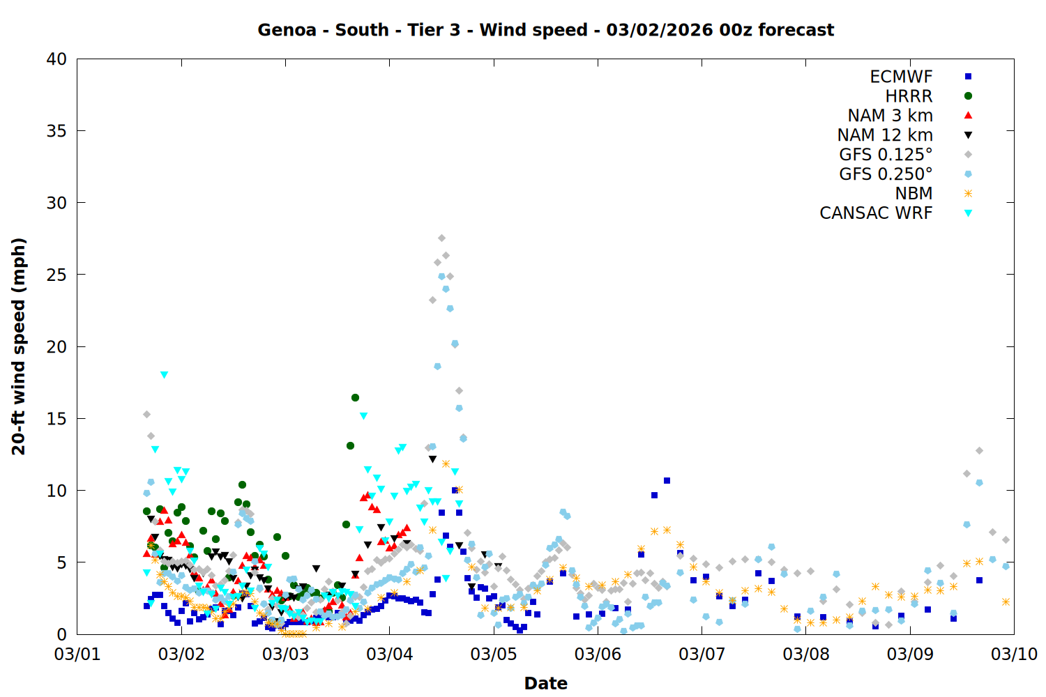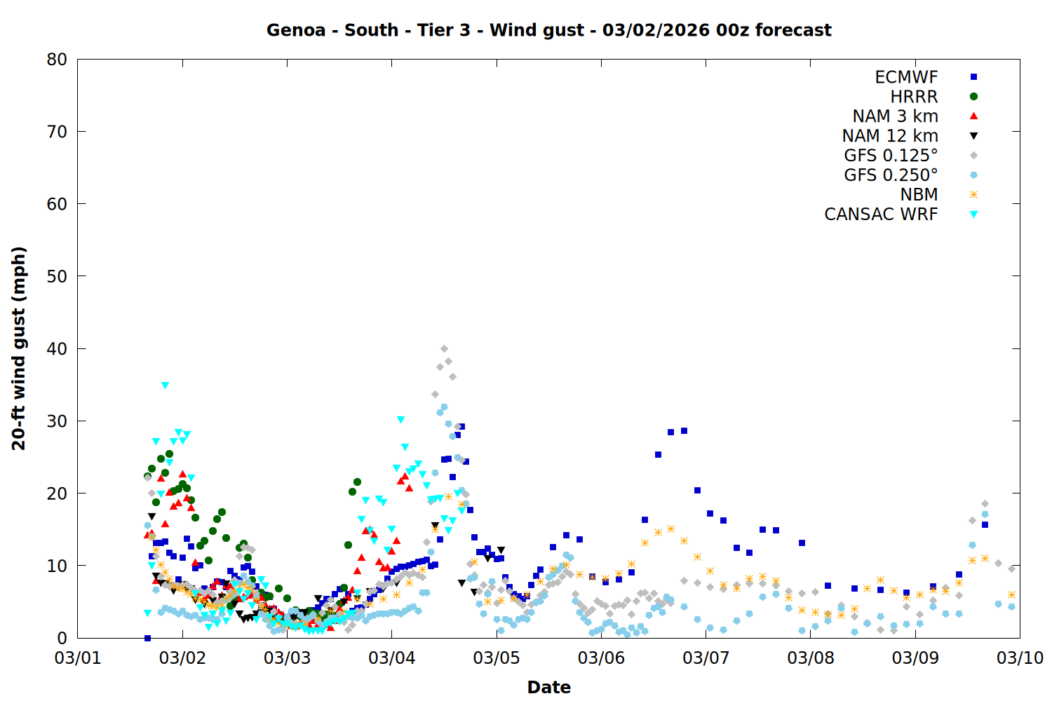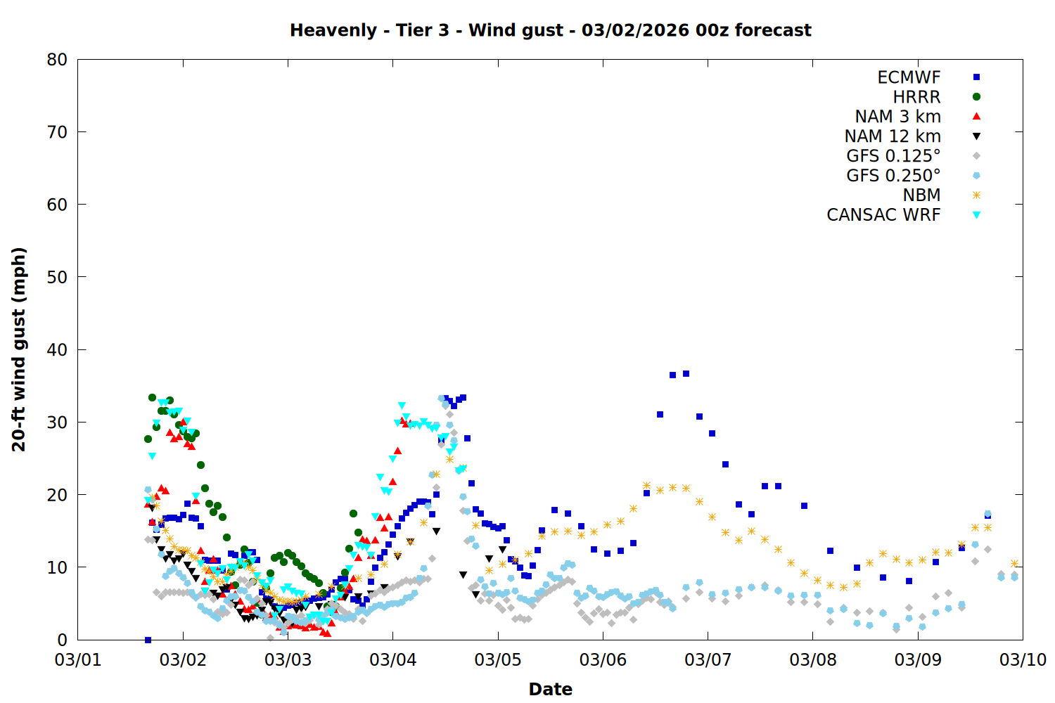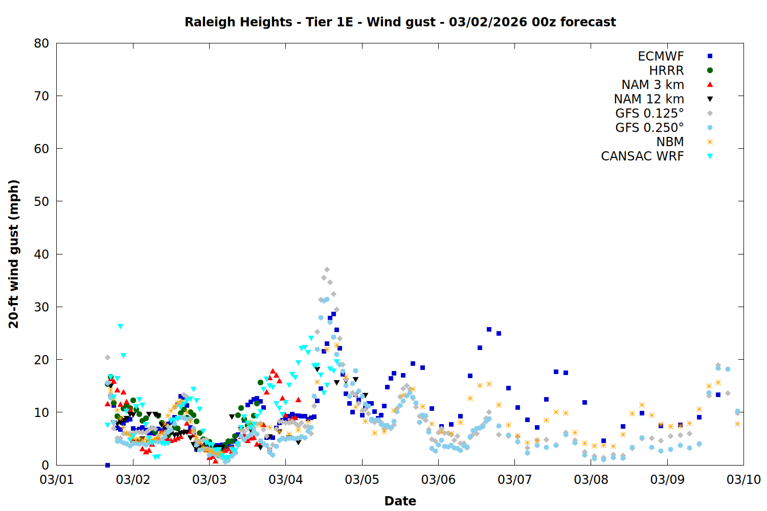 | Zone | Mar 01 | Mar 02 | Mar 03 | Mar 04 | Mar 05 | Mar 06 | Mar 07 |