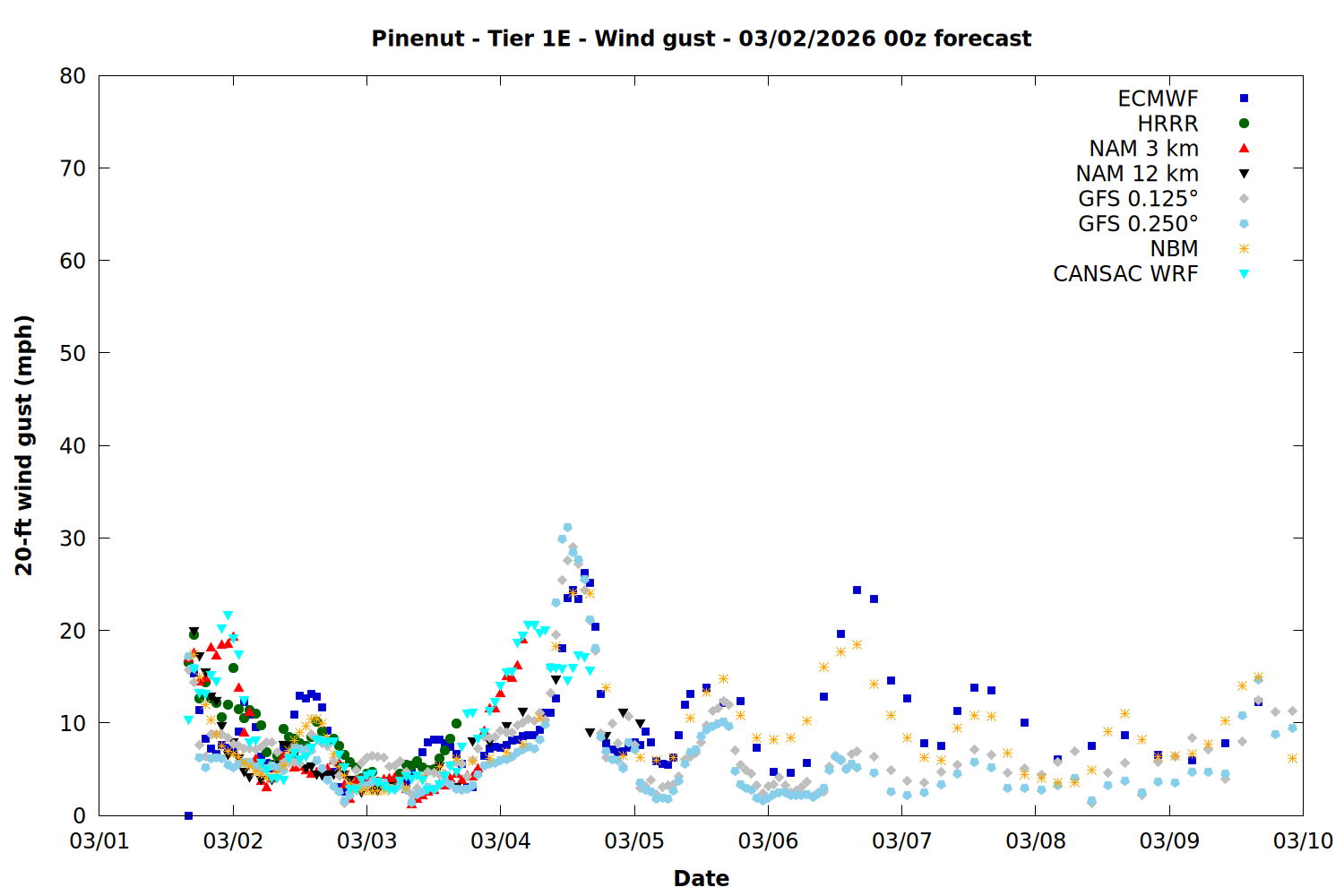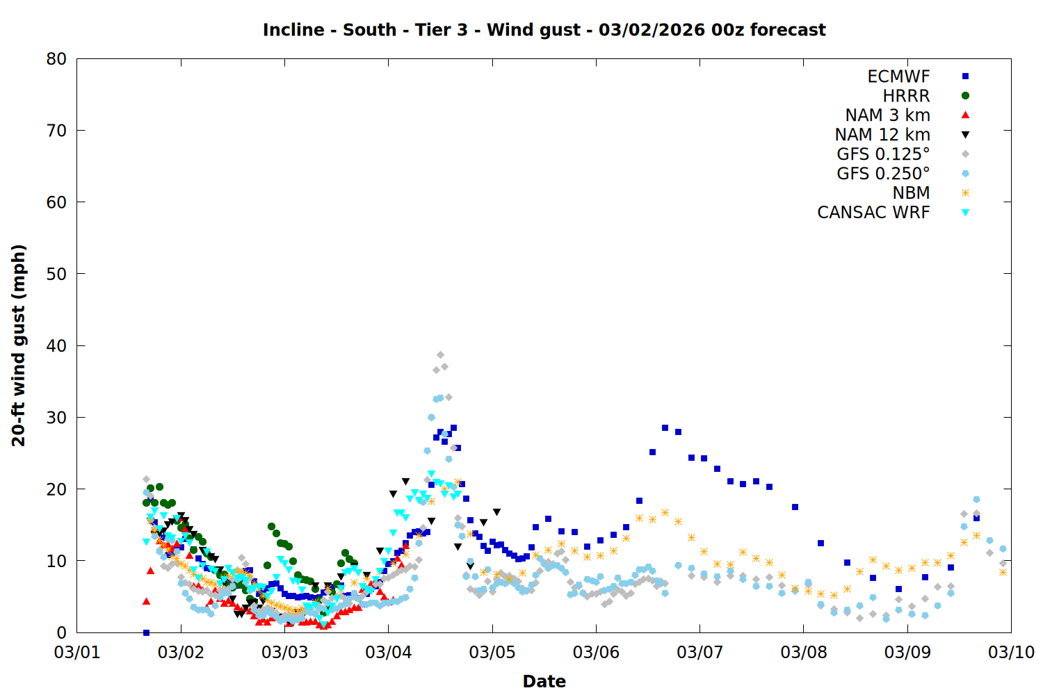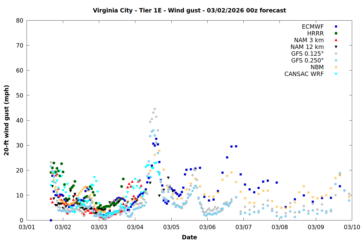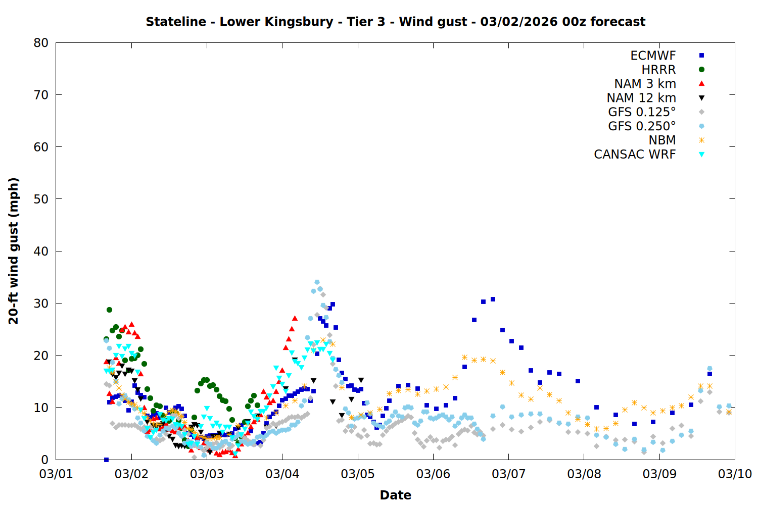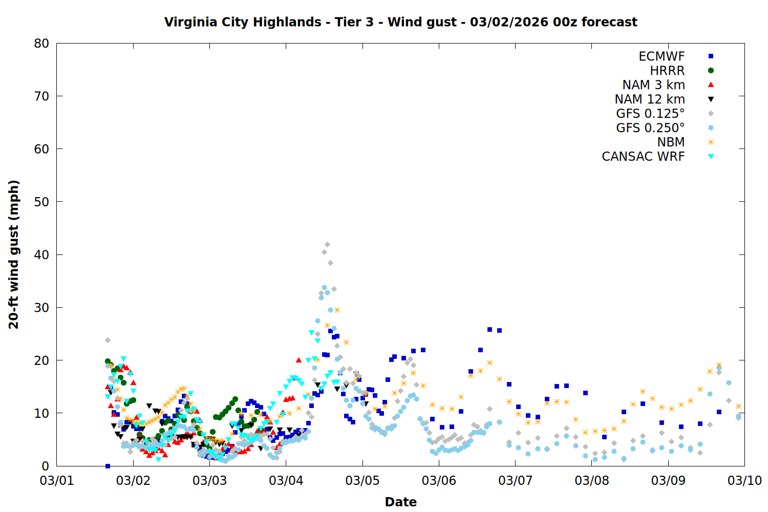 | Zone | Mar 01 | Mar 02 | Mar 03 | Mar 04 | Mar 05 | Mar 06 | Mar 07 |