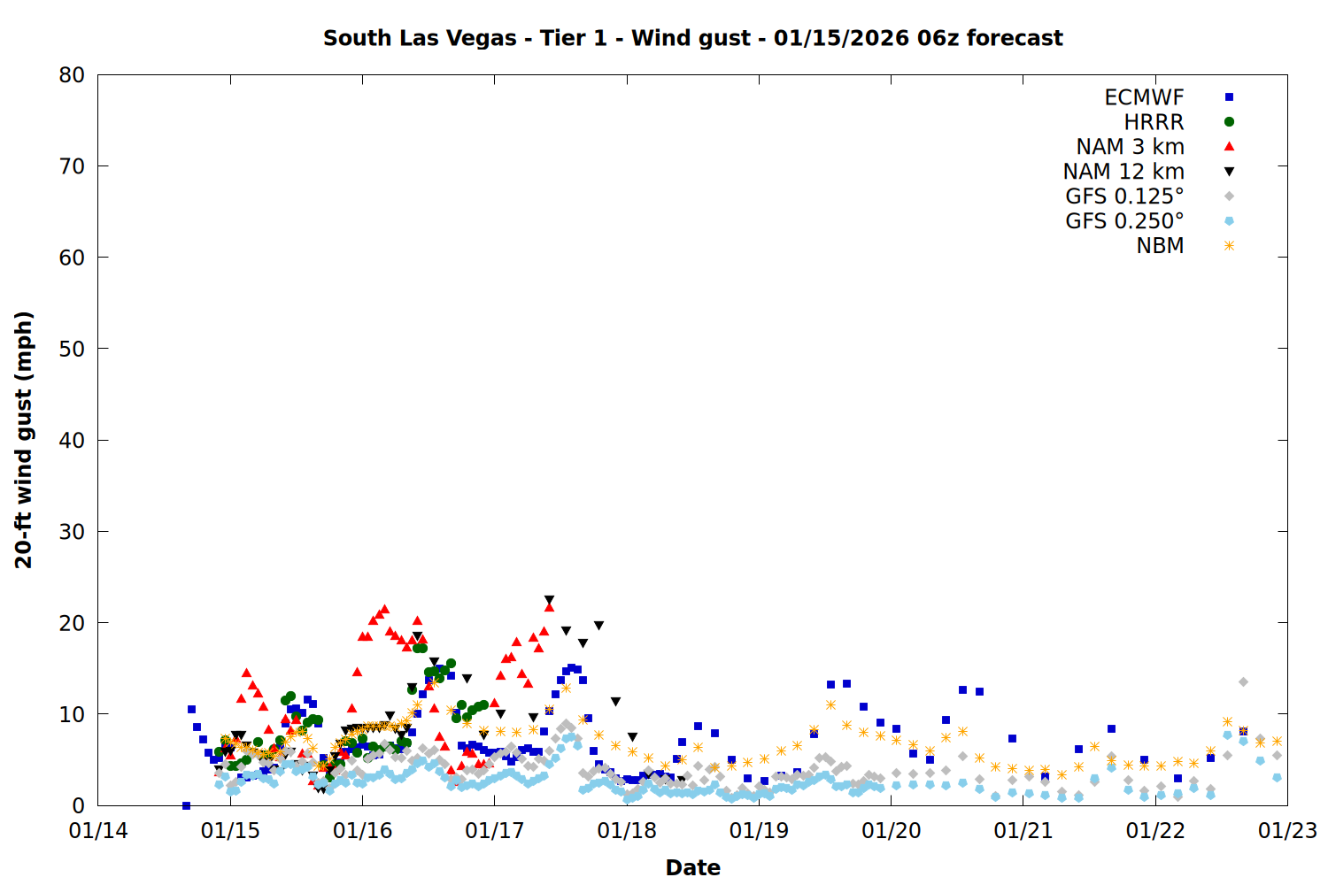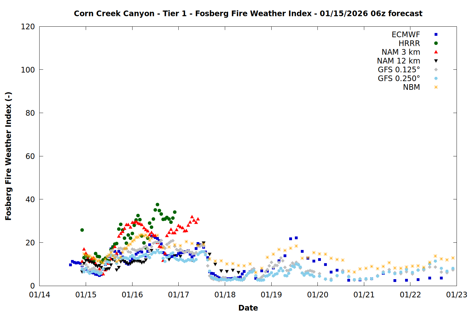 | Zone | Jan 14 | Jan 15 | Jan 16 | Jan 17 | Jan 18 | Jan 19 | Jan 20 |